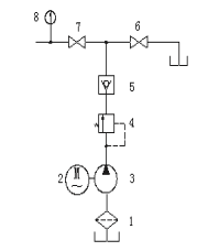 1.電動機 2.外螺紋角式截止閥 3.齒輪泵 4.油箱 5.網(wǎng)式濾油器
